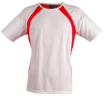 Fabric: CoolDry® Ottoman 140gsm - 100% Polyester . Description: Moisture management fabric. Ultra light mesh in contrast contoured side panels for ventilation. Excellent fit and comfort for athletes.